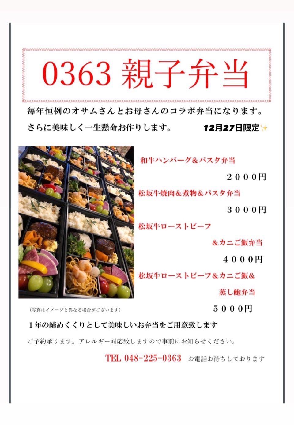 そして12月27日御用納めの親子コラボ弁当もまだ受け付けております。