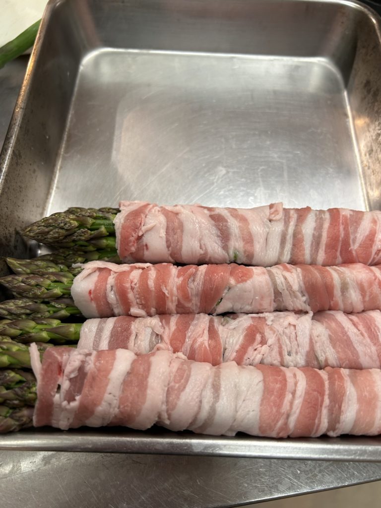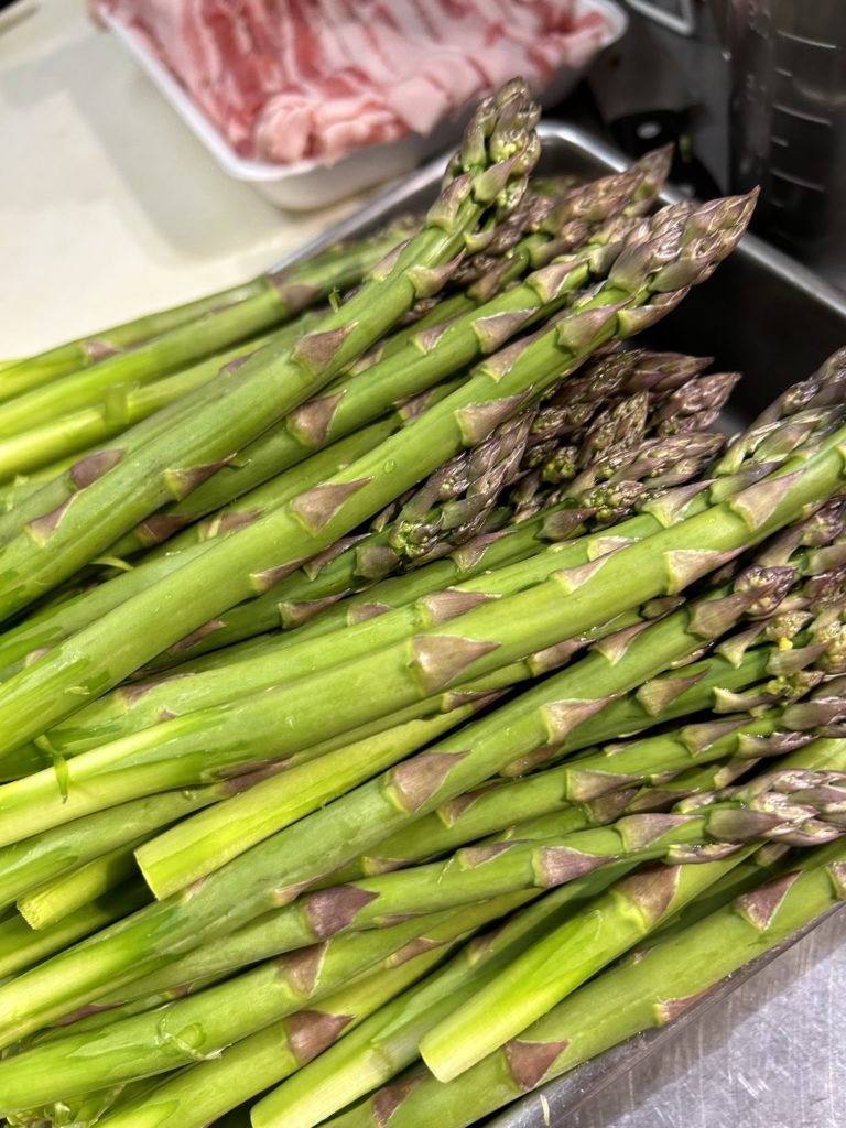 アスパラの昆布締めや、アスパラの豚バラ巻き、もちろん不太いアスパラの塩ゆでもおいしいです。